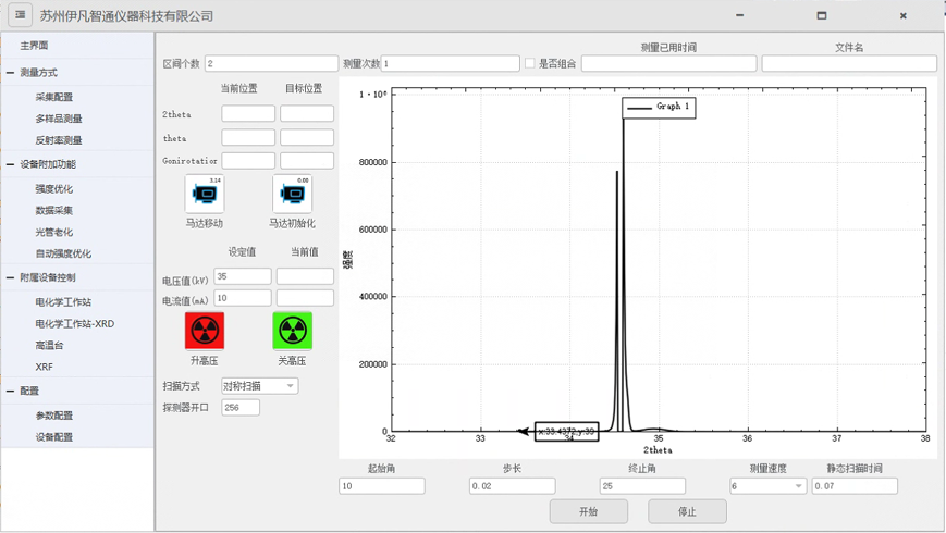 软件用于检测物品的元素分类、特性。在指定的高压下通过串口控制马达和探测器的移动,保持两者运动一致并将采集的多通道数据根据特定算法计算后输出至指定文件且进行实时绘图。支持多种马达、探测器、高压发生器等硬件组合,支持对称扫描、摇摆曲线、Z扫描等多种运动方式测量。
